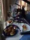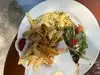 We were there for a wedding brunch on a Sunday morning. There is a large selection of buffet foods , fruit, and desserts. It is outdoor seating under large umbrellas. A pretty setting, picturesque and quaint. There are steps from the parking area and to the rest rooms. While there is a very narrow ramp, I would not recommend it for a person in a wheelchair or motorized cart.