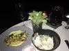 I ordered fish which was truly awful. The bread and herb butter were very good. The two desserts that we ordered were good. It was a beautiful drive up to the restaurant and the area surrounding it. The restaurant was very pretty with many trees and a multitude of white lights in the trees and around the tables. We could also hear a creek flowing below the restaurant.