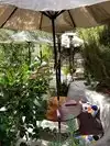GORGEOUS!!! Oh my, this place is an incredible experience! The outdoor patio setting literally feels like something out of a fairy tale! It's so calm, tranquil, and beautiful. Plant life everywhere, flowers, trees, and the sound of wind through the shrubbery. Wonderful! We took a lovely weekend drive down Topanga Canyon Blvd, and decided to stop here for some brunch, as we had heard good things about this place! We weren't disappointed! They have valet parking, but it's really cheap, and it wasn't very crowded when we went. We were promptly seated and had our order taken and brought out in no time at all! I ordered a "love potion" kombucha drink that was strong but very good, as well as a classic breakfast. My boyfriend ordered a yummy quiche dish! It all was so fresh and natural, I loved it! THE definition of farm to table! You could just taste that quality in everything - the potatoes, the vibrant greens, and the eggs! I was very impressed! The prices were a bit high, but the food was all wonderful, the service efficient and courteous, and the setting absolutely gorgeous, so I'll take it! I was thoroughly impressed and would love to return!!