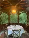 Most people come here for the atmosphere which is undoubtedly romantic with all seating outdoors under the trees. The menu is ‘different’ with limited options for those of us who are not foodies. The menu is organically focused and until recently, was entirely vegetarian. We ordered a variety of appetizers, salads, main courses and desserts and they were all fine, nothing special though. There was one wedding proposal (accepted!) while we were there which is what this restaurant is about. One item of note is that they host weddings in an area adjacent to the general dining area and on the evening we were there the DJ was playing loud music which distracted from the ambiance.