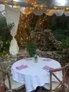 If I could rate this with negative stars I would. Booked with plenty of time for a Saturday Wedding Night dinner and drove an hour to get there. 1. Gazebo we were told we had was not available until an hour after our dinner reservation. 2. No one was available or anywhere to be found when we arrived for our reservation. 3. Women's bathroom had been taken over by a wedding party and turned into the bridal suite. Apparently they only have one available for guests. It was very awkward and uncomfortable for my wife. 4. When we finally were seated there was a long trail of ants surrounding my wife's back and a lot of fallen twigs and leaves all over the seat. Great combination for a wedding dress! 5. There was a storage space within 5 feet of our backs which reeked of leaking propane tanks which were piled high and lit patio heaters only a few feet away. 6. When I made the reservation I mentioned my wife liked chicken and vegetable entrees. The menu had only a handful of selections and none of what was described when I made the reservation. The parking attendant was gracious and spoke with us when we left after 10 minutes. He noted that the owner was actually a very nice person and would want to hear about our experience. He took my number. As of this writing, 2 days after the debacle, I still have not heard a word. They ruined what was supposed to be a very special evening that we will NEVER GET BACK!! Ken Gunville