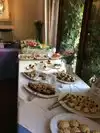 After hiking Topanga Canyon we were 1/2 starved to get to the Inn. It has tables in all kinds of nooks and crannies, and even a dog table for dining with canine friends. The women's room was very clean. We were put in a little gazebo with one table for four of us. Very comfortable. Service was a bit slow, but there were two baby showers going on. Brunch buffet was set inside a small chapel and included salmon, crab legs and all kinds of food I couldn't eat on my diet! Everyone in the party enjoyed their food. It would get a 5 but for the service.