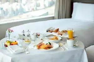 Couldn't have asked for a better night's sleep. Didn't spend much time at the hotel but did go to the restaurant and get breakfast to take back to the room. Delicious omelet and potatoes. Really fantastic view of the city. Staff was especially helpful.