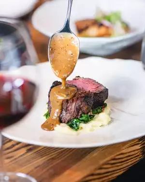 While we didn't actually eat at the restaurant, we went for a reception in their private room. Hors d'oeuvres were provided by the chef and were absolutely delicious. Succulent beef ribs, just the right size to dive into and enjoy over and over again. Passed one bites that included perfectly prepared shrimp, burrata toasts, pork tidbits, etc. Service was exceptional, as one would expect. And lovely ambiance. Will definitely be on our list to return.