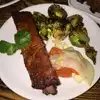 Excellent from start to finish. We shared the triple rib combination and it was fall off the bone delicious. The cornbread biscuits were incredible. For entrées we had salmon and cod and finished with a huge cappuccino and the pudding trio!!!