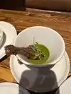 We made our reservation months in advance - not realizing Game 4 of the Golden State Warriors - Houston Rockets NBA Western Championship Series would be that night. Since we arrived early, we waited for our table in the bar and could watch the game and have a conversation. Once seated we could only tell how the game was going if the fans on the screen looked noisy and happy or if they sat still. The service and the food were fun and delicious respectively. The game was not a distraction at all, until, at the end, when one of our many servers was clearing some plates. He froze, dishes in hand. I looked up and saw him staring at the screen. I tapped his elbow, smiled and said, "No watching on the job." We both got a good laugh. International Smoke - watch Curry while eating a curry designed by a Curry. Heaven....