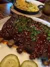 The ribs are truly the best I have ever eaten. Ordered the pastor and also found the tangy, sweet sauce to be excellent. The cornbread is average. I enjoyed the wedge salad even though it is commonly served at such places. The mac and cheese was good but the rib ribs were few and similar more to bacon bits. The beer selection was good. I want to return for the steak. Again, the ribs are the star.