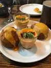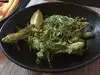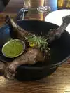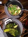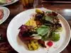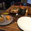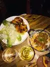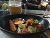 I had the Gulf shrimp to start with miso butter and grilled lemon which were really tasty, then not realising how large the ribs would be, ordered the combo rack of smoked pork ribs ‘St Louis cut’ which were 5 enormous ribs of each of the following flavours - American BBQ; Al Pastor; and Sedame-Gochugang. All three flavours were delicious, but there was far too much for one person, so only order a half rack of one of the flavours. I ended up taking a ‘doggy bag’ away with me as they were far too good to leave behind. Good atmosphere inside.