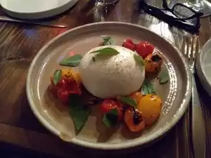 Overall, things were OK, and based on the evening, an "average" review feels appropriate. The space is cozy and I can understand why friends have recommended we visit as well. With that said, I would like to go back and try a few other things on the menu, especially one of the pizzas which looked very good. For this evening we tried two smaller plates and two of the main pastas, one desert, and two drinks each. The menu is seasonal and may be different at another point in time. The highlights of the night were the little gem salad, house made burrata, and the brown butter cake for dessert. The salad had simple greens with complex flavors, but felt a bit overpriced ($18) compared to the other items and price points on the menu. The burrata was perfection, however, with its salty and garlicy bagna cauda paired with grilled greens (recommend!), and the brown butter cake was truly a delicious way to end the night; it had almost the taste of breakfast, meant in the best way possible, but with ice cream. The misses for the evening are what prevented this from being a four or five star review. The two main pasta dishes (ricotta gnocchi and malfadine Bolognese) arrived to the table tepid at best, so much so that the grated cheese on the Bolognese never even melted. The gnocchi was the real letdown, however. The menu read "ricotta gnocchi, marinated beet, mushroom, horseradish, caper." These scream flavor-bomb ingredients, but the dish never lived up to that. It was bland, there was no hint of horseradish nor capers, and only tasted like soft dumplings in a perplexingly uninspired, thick sauce, lacking the balance that salt and acid would have provided. Lastly, service was extremally pleasant and friendly, but often inattentive. Once the two small plates were cleared, we really didn't see our server again until the main course was cleared. We would have happily ordered more wine, but the opportunity neither presented itself, nor did we even have the chance to catch the servers attention until the end of the evening. While this was on Christmas Eve, which can typically be hit or miss at any restaurant, there was no unique menu or gimmick that should have detracted from food and service quality, and at the time of dinning the restaurant appeared perhaps a bit more than half full.