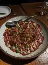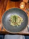 I ate here last week while I was in town on business. The idea is to order a few small plates for the table and then everyone orders a main dish. Since we had 6 people, we ordered a medley of small plates. The ricotta dumplings was the best dish. The other dishes were good, but not as good as the dumplings; we had carpaccio and a pear and blue cheese salad. We also had the shishito peppers but they were tossed in this creamy dill sauce, and they tasted like Thanksgiving green bean casserole. For our mains, we all ordered pasta. I had the spaghetti cacio e pepe with a truffle cheese. It was good but could have used more of the cheese vs a creamy sauce. The service was good, but our server did not great our table for 10 minutes and I had to ask to have the server come over. The restaurant opened in January of 2018 and the menu changes daily.