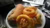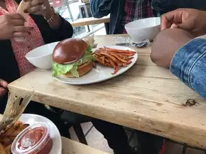 The Umami burger, which is a grilled portobella mushroom, grilled onions, cheese, lettuce and tomotoes with a chipolte remoulade was really good.....their fluke flounder is excellent and there are a number of fresh and cooked seafood to choose from.