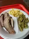 You order at a window, get you meal grab a drink then pay. There were several sides to choose from. No bake potatoes after lunch. I ordered the brisket. It was tender and flavorful. I had pinto beans and green beans. The green beans were specially yummy with bacon cooked in. I was a little disappointed that they did not serve cornbread. The barbecue sauce was served on the side to add as much as you like. My friend ordered the smoked turkey which look juicy and flavorful would definitely eat there again.