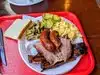 Went on the recommendation of our tour bus guide and were not disappointed. Ordered the Sliced brisket plate with a Beef Rib, coleslaw and creamed corn. Meat was fork tender and juicy and sides were like Mom used to make. Went back twice during our stay