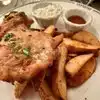 Great casual atmosphere and lots of interesting decor around the interior of the restaurant. We had an order of fish and chips and an order of fish tacos. The food was served hot and delicious, the staff attentive and friendly. There was a good selection of local beers and mixed drinks on hand. A very good experience and we would eat there again. Prices were reasonable.