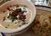 We took an Uber from the Gaslamp District to this restaurant. Even though our driver lived in Little Italy, he had to drive around several times until he located the restaurant. I mentioned this to the hostess and she stated that she hears this a lot and that the small black sign can not be seen from the street. The large building looks like an industrial warehouse. Initially, we were seated outside but we asked if there was an indoor table. We took the high top table otherwise there would have been a 30 minute wait. These tables were very close to neighboring tables so people had to squeeze between the tables. There was a small wooden seat that was attached to allow a person to “swing” in and out from the table…very uncomfortable. I ordered the mushroom Campanella which had pieces of scallops, Brussels sprouts, pasta, mushrooms and cream. It was really rich and I just couldn’t eat it. My husband enjoyed his bowl of clam chowder. Eating here was not enjoyable due to the uncomfortable seating and crowding, and not a fan of the menu items.