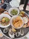 I had the BIG platter. Marinated shrimp, shrimp aguachile, rock fish ceviche, six different origin oysters. Ummm, so good. Sauces and horseradish and mignonette. Just the right amount to roll me out the door. This is the place to go.