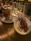 Loved everything about this place. Really fun, cool atmosphere without being too noisy or overwhelming. Great service (we ate at the bar - popped in without reservation and had no wait). I had a crisp Sauvignon Blanc and we shared a flight of 6 oysters, the best grilled octopus I’ve had (with a chorizo salsa) and fresh crispy fries with the perfect blend of salt and seasoning. Highly recommend!!!