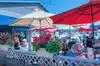 From work we go here about 11 to beat the crowd. And it will get busy fast. Great location view and you start off with a short walk from parking down the ramp and past some boats and the resturant Later in summer as water goes down the ramp will get steep so no heels. The service is fast and friendly and a good selection of fresh food. The produce I know is great as our company delivers here every day. Prices are good and enjoy.