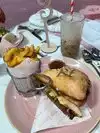 This was just gonna be a coffee run for us but we had a snack too. Not expecting anything, we struggled to find it at first but a sandwich board caught my eye so we parked on the street and walked through the car park and down a boat ramp to the cafe. Well what a pleasant surprise. This place is as cute as a button!!! You'd expect this at the beach, floating pontoons covered with umbrellas and outdoor furniture. Great waiting area with built on benches and an outdoor bar! The indoor bar and dining is really cute too. This place would be great for after work drinks any night of the week! The atmosphere here is great and for that reason alone it's worth coming to. Then there was the food and the service. Sure it was busy, very busy and we gladly waited but it took a bit of a wait for our drink order to be taken. No espresso so only drip coffee, first disappointment. No spoon came with the coffee to stir sweetener or creamer. Erg! We ordered two simple starters, chicken skewers and onion petals. Well they tasted great! But no worth the 25 minute wait for them to arrive especially when the table next to us ordered after us and got main courses before our little starters. Drink refills were good but It was about another 20 minutes after we finished before the waitress returned so we could ask for the bill, and only after I called her over! The menu is akin to a diner but looks pretty good from the plates being delivered around us.... the fish taco looked to be a winner but we will see if we go back. The frozen cocktails look pretty tempting too!!!! The service needs tightening up for sure to really make this place a really worth while place to go, it's just too casual.... but if they do functions it would be totally awesome. I would be having a party here for sure. It's super cute and cool!! Look if you're ok with waiting this place is worth going to just kick back and chill because it's does make you feel like you're at the beach and not near the city!