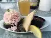 Excellent location. Worth a stop, especially if a nice day. Lots of seating so did not have a long wait. Bar area to grab a drink if there is a wait. We had shrimp and halibut fish tacos and both were very good. Service was very friendly. Would definitely return. Not a huge menu, but what they had was very good