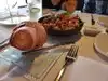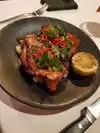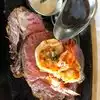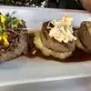 Excellent steaks rivaled by the harbor views ! My spouse had the 20 Oz bone-in ribeye with a brown peppercorn sauce. There was very little fat, maybe an ounce, that my spouse cut off. The steak was flavorful, juicy and cooked to order. I had the trio of filet mignon. Each 3 Oz piece had a different sauce or topping: mushrooms on the 1st beef medallion, lump crab topping on the middle filet, and my choice of fresh green chimichurri on the 3rd steak. All 3 filet mignon were nestled onto a spoon of mashed potatoes with red wine Demi sauce. We also ordered a side of grilled asparagus enough for two persons. Dinner also comes with a hot freshly baked popover. it’s a bread that resembles a hollow muffin. Excellent steak house! Excellent water views! Attentive service! Only thing missing is live music from a pianist. Just a suggestion.