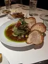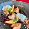 Island Prime is a staple of San Diego restaurants. When Covid put them down, their team decided to use the floating barge next to Coasterra as a pop up restaurant. This facility has been used in the past as a banquet and wedding facility. It has turned into a wonderful dining experience. All Covid protocols are being followed. Justin, our server, was both professional and attentive. Our meal consisted of White Shrimp with Avocado, Hearts of Palm and Russian dressing, along with a Stone Fruit and Burrata salad. Our mains were Nordic Blu Salmon and Snake Farms Wagyu Eye of the Rib-eye. Both were cooked perfectly and served piping hot. A nice dessert of Strawberries Romanoff and a fresh Peach tart with Guava. Highly recommend this restaurant if you are looking for a wonderful dinner and stunning views of the San Diego skyline