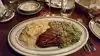 We are here and both chose the New York Au Poivre. Both were cooked to perfection. I had the creamed spinach and fries and my wife went for the onions and carrots. It was a most enjoyable meal and the head waiter was very charming.