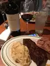 Great vibe in this casual steakhouse! Very friendly staff and food was delicious. The NY strip steak with chimichurri sauce was cooked to perfection and an excellent cut of steak. Sour dough bread before dinner was yummy as well. Only down side was they ran out of baked potatoes but the waiter was very apologetic and offered us detailed descriptions of other options. And it was rather on the expensive side.