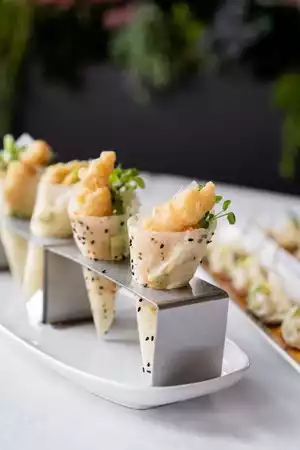 Some friends treated me to lunch here recently. It was fun to start with a glass of bubbly. With all our chatting, our server finally told us to just stack our menus when we were ready to order. Upon type recommendation of friends, I had the Ahi tuna sushi roll. It was delicious. Another had the sushi cone which was fun. The chicken noodle curry bowl was also well received. The restaurant treated me to a dessert so we shared the donuts in a marscapone/ lemon curd sauce. Delicious!