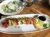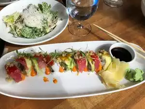 I like the atmosphere. Starter Caesar salad was one of the most understated and bland Caesar I have eat. Not worth $7.50. The hibachi wings were good, nice little subtle kick to them. My friend enjoyed his rainbow roll. Drinks were good. Price wise the dishes should be elevated as far as flavor and substance. Willing to try out more dishes upon another visit.