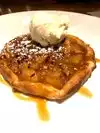 Wasn't our destination, just convenient, but should have been. Nice service, attractive ambiance, waitress was personable and knowledgeable, very nice menu selections and drink menu. We were given a drink while waiting to be seated and given a nice appetizer, once seated. Our four lunch selections received high praise. We topped it off by sharing an apple pie dessert. Very enjoyable experience. We were seated in a room that was glass enclosed but which was open so it was like a 3 season room. Very nice.