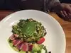 First time, bellied up to the bar and had the best server, Aspen waited on us like we were royalty. Birthday di ner to remember. The chicken lettuce wraps were a great start and the New York steak with blue cheese butter was amazing as well as the Yellowfin Tuna salad was absolutely spectacular! Busy place but well worth the visit. We'll be back for sure!