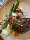 My husband loves Steak and we have gone to many overpriced Steak houses mind you they are good but the atmosphere is dark and boring. Here you can get a great steak Peppercorn NY or Filet with your side dishes for under $35. You must try the mashed potato rolls! Yum! You won't be disappointed!
