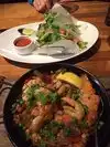 Hip, Happening, lively bar scene, beautiful wait staff, all combine to make a delightful dining experience. The menu is varied and can please most anyone. We had the Paella and the fish tacos. The paella id packed with shrimp and fish and served in a cast iron skillet which makes the rice slightly crispy around the edges. the fish tacos were very fresh with nice flaky fish and crisp greens. We will return