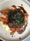 Fab service for sure great drinks nice wine list. Mussels were the best with cream sauce over the top. Short rib in cherry sauce unreal with mashed potato and asparagus wonderful. The clams were spicy the lobster roll. Very spicy. Fab spot