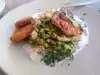 Excellent appetizer - ahi nachos! - and phenomenal sushi for dinner, accompanied by a refreshing cosmopolitan. Bliss! Atmosphere is fun, colorful and lively against a backdrop of the ocean. Perfect.