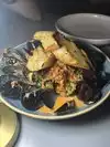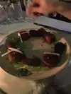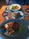 We were lucky enough to have a table right by the window which overlooked the beach and ocean. The views of the sunset were fantastic. We went on a Friday evening and managed to book quite late but it was still very busy. The service was excellent and the atmosphere had a nice vibe. The food is a mix of Asian/Japanese inspired with traditional dishes too. My wife had the fish in a lovely spicy broth and I shared the steak taster menu with my Grandson, the steaks were nice although the skirt was a little tough. The carrots were fantastic, they had a spicy covering and there were enough for all three of us. It’s a little pricy but worth at least one visit. A great bar selection too. Give this restaurant a try if you are in Mission Beach, you won’t be disappointed.