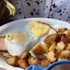 Good " mess" of potatoes Ok French toast Great hot chocolate OJ. Outdoor seating covered area is not always open but a few picnic tables seem to be always open. Indoors well ventilated bring a sweater for inside more for outside unless sunny no breeze etc Place can be busy so it can be slow, or there may be a wait. Check their website for hours (can change with COVID etc)