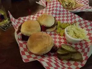 This is an old bar that serves decent pub grub and is a great place to get out of the rain for some drinks and a bite to eat. I’ll go so far as to say I ate the best hot wings I’ve ever eaten, but my wife hated her pulled pork sliders. No one else complained about their food but no one spoke up about how great it was either. They were out of a handful of beers that we wanted to order but the wait staff was extremely friendly and helpful.