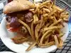 I don't know about the rest of the menu, but these fries are the best. However, if you aren't ready for some serious garlic, take a pass. Just the right partner for several cold, local brews. A good place to hang outside.