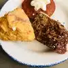 We had read the rave reviews so wanted to eat here, but hadn't realised they only do buffet brunches on weekends. My husband was really looking forward to trying their chicken-fried beef ribs but of course that was the one dish not included in brunch (and it was not possible to order it from an a la carte menu either)... We were driving through and happened to arrive at peak lunch time so we faced a 40-minute wait. There's no decent waiting area: you can stand outside (it was a cold and windy day) or try to find a spot where you won't be in anyone's way in the limited space between the front door and the staff station. I would have sat in my car but we had to park a bit off (again, peak...). I realise the waitstaff were busy but for us on the waitlist, it was frustrating to see tables waiting to be cleared after patrons had left, and the same tables then standing empty for up to 10 minutes before a party was seated there. Once we got seated, the service was attentive and efficient, with drinks arriving promptly and frequent water refills. The food was amazing, which is extra impressive in a buffet - in their favor, the food didn't exactly have time to lie around during this time of day, and the sort of comfort food they serve doesn't fare too badly even when people shovel it around. The dessert table was a bit underwhelming, but that was probably a stroke of good luck as I might have burst if they'd had good dessert.