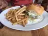 Love this place. Food is amazing. Love the pimento cheese free appetizer; had to get a jar of pimento Cheese to to take home 😍. I had a burger with cheese, bacon, jalapeño mayo, pickles (had them hold the bbq sauce) - it was amazing. Had the sweet potatoe fries that came with roasted garlic aoeili (sp?) which was a great combination. My friend had the special of the day which was fried shrimp and she said it was great