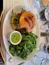 I had a great salmon burger With a fresh cantaloupe juice .. Friendly staff It looks like a good breakfast or lunch place .. nice and good food