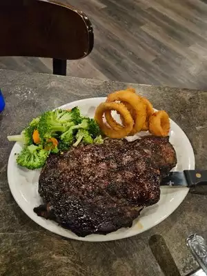 We found a deal on restaurant.com, if smoke really offends you be careful. There is smoking but its not perfect. Great big rib-eye $12.99. Thick and cooked perfect. So big was that we were full, had a snack, and flavored our chili. Very pleasant staff.