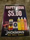 Every night Jackson's has a $7.99 steak special. The steaks are awesome. They also have a prime rib special every Monday night for $9.99 that is also awesome. We always have a great time at this bar. Lot of TV's. Be ready for a lot of Green Bay fans. Their hamburgers are also really good.