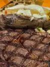 Me: Steak and eggs. Rib eye steak cooked perfectly and delicious. Medium rare and still has slight charring (which I like). Eggs over easy; made just right. Wife: Fajita burger; hold the peppers. She said it was cooked perfectly and delicious as well. Waitress; absolutely delightful, hardworking and always there when needed. Criticisms: Smoke came into the dining area, even though it is almost a different room. Smelly restroom. Value: Good prices and Restaurant.com voucher makes it a steal.