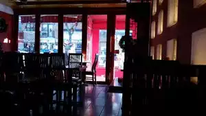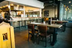 Patio looked very nice. Character is rustic which I guess is supposed to make people feel comfortable Too many mason jars. After sitting on the picnic bench for an hour, not too comfortable. Also extremely noisy. Food was Ok but expensive for "comfort food". Had appetizers(brussel sprouts, etc) but portions were small for items meant to share.Occupied by hipsters in flannel shirts
