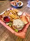 We went for a Sunday dinner, they were not full but there were a number of very noisy small children making it hard to hear or be heard. There were several special prices on regular items available for Sunday's that may have caused the day to be different than other days. I had the cheese burger with fry's. The burger was tasty but very wet, it was not wet with flavorful juices, more just oily. The fry's were tasty but not crisp, very limp. We also had the vegetarian meat loaf(same patty as used in the Vegetarian burger), tasty and enjoyable. We also had the vegetarian burger, and the limp fry's. This burger was better than the beef burger.
