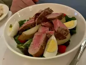 Service was great right from the start. Food was also very good. The table had steak, scallops and the mussels. Just like Paris. The salads were decent size and very good. would go back.