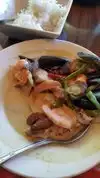 Very good seafood red curry. Ample seafood including squid and scallop. Plenty of red pepper and other typical ingredients. Good amount of Thai basil. But. The sticky rice was in a plastic baggie inside aluminum foil inside the typical rice paper box. It filled a little bit less than 50% of the box and was therefore a very modestly sized meal. The method to make the sticky rice must have been one of the quicker methods because it didn't have the same and better quality of other sticky rice. And wrapping hot rice in a plastic baggie makes the rice absorb the plastic to be eaten. To whoever is reading this: the curry itself was darned good and I suspect the other items are of similar high quality. But the restaurant should reconsider how the sticky rice is prepared and presented.